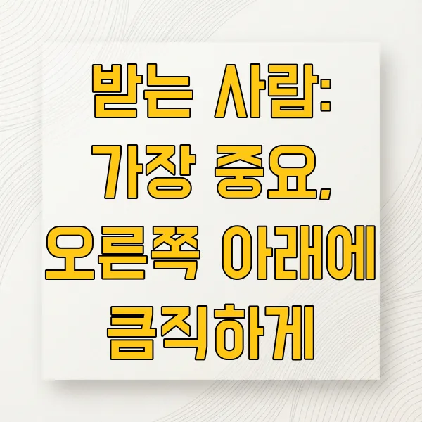 받는 사람: 가장 중요, 오른쪽 아래에 큼직하게