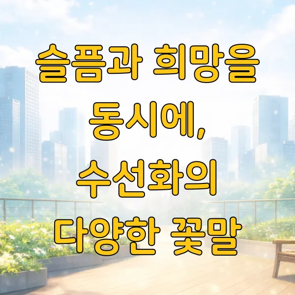 Q4: 수선화 종류별로 꽃말이 다른가요? A4: 네, 색깔이나 형태에 따라 꽃말이 조금씩 달라질 수 있습니다. 일반적으로 흰색은 '고결함', '신비', 노란색은 '풍요', '행운'을 의미하는 경우가 많습니다.