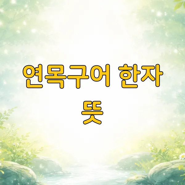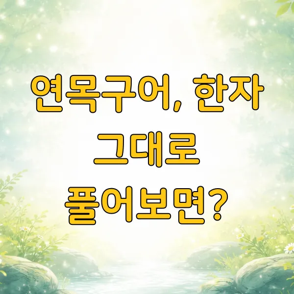 '연목구어'는 네 개의 한자로 이루어져 있어요. 먼저 '연(緣)'은 '인연 연'이라고도 하지만, 여기서는 '연하다', '이어진다'는 뜻으로 쓰여요. 둘째 '목(木)'은 '나무 목'이고요. 셋째 '구(求)'는 '구하다', '찾다'는 뜻이에요. 마지막 '어(魚)'는 '물고기 어'죠.